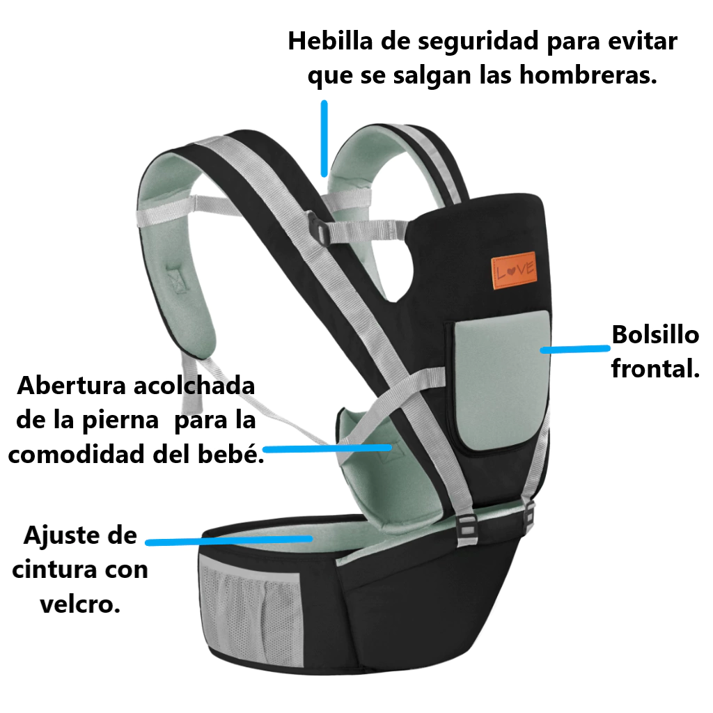 La Mochila Porta Bebé Love 4009 es la solución perfecta para llevar a tu bebé contigo a todas partes con comodidad y seguridad. Su diseño 8 en 1 te permite usarla de maneras diferentes: