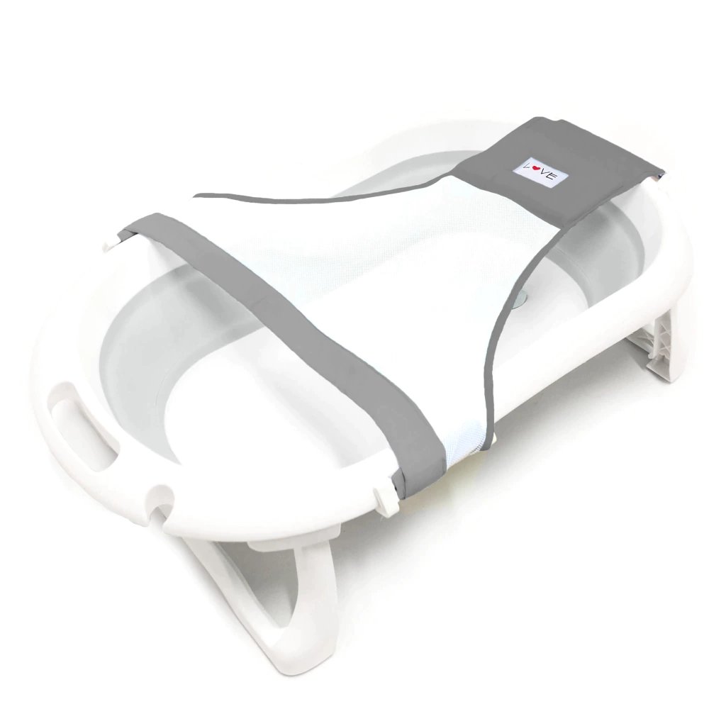 Red de baño impermeable para sostener al bebé y poder tener ambas manos libres para bañar el babé.