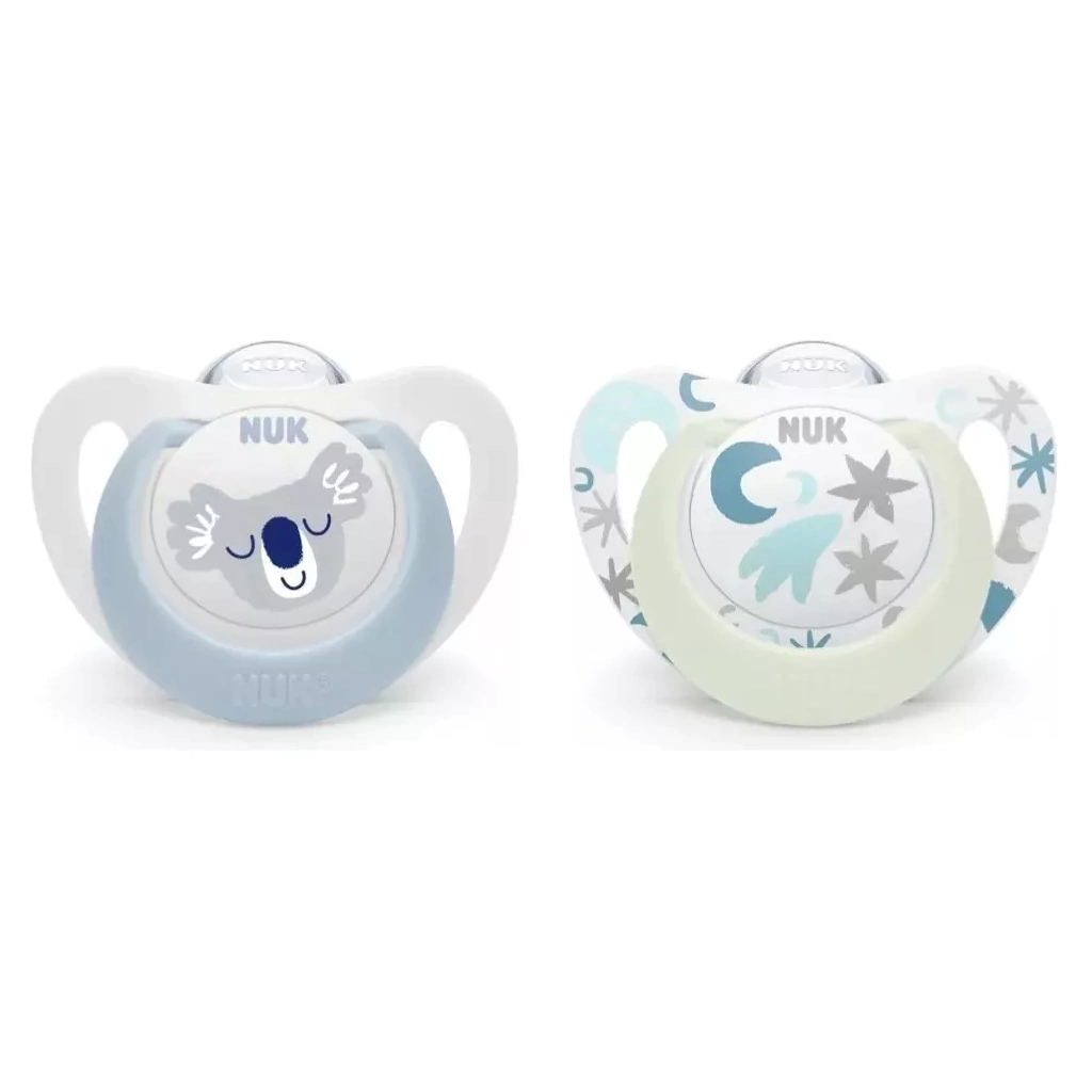 El chupete con estrellas tiene un efecto que brilla en la oscuridad, lo que los hace particularmente fáciles de encontrar por la noche.